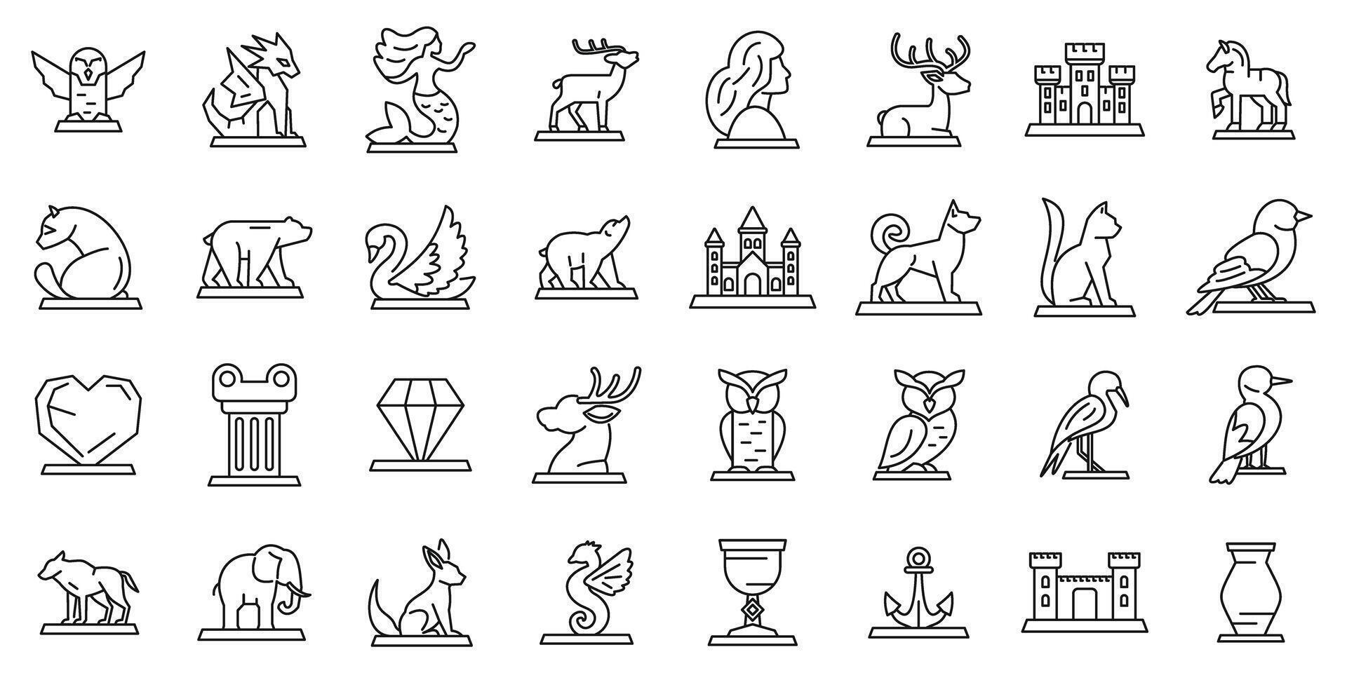 Ice sculpture icons set. Set of heraldry statues showing different animals, objects and mythical creatures line icons Pro Vector