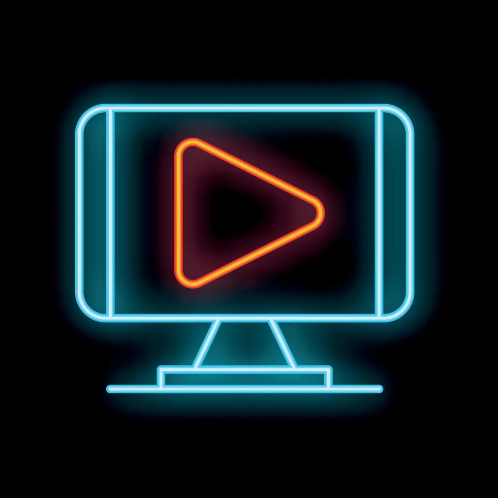 Neon icon of computer monitor displaying play button for online video streaming Pro Vector