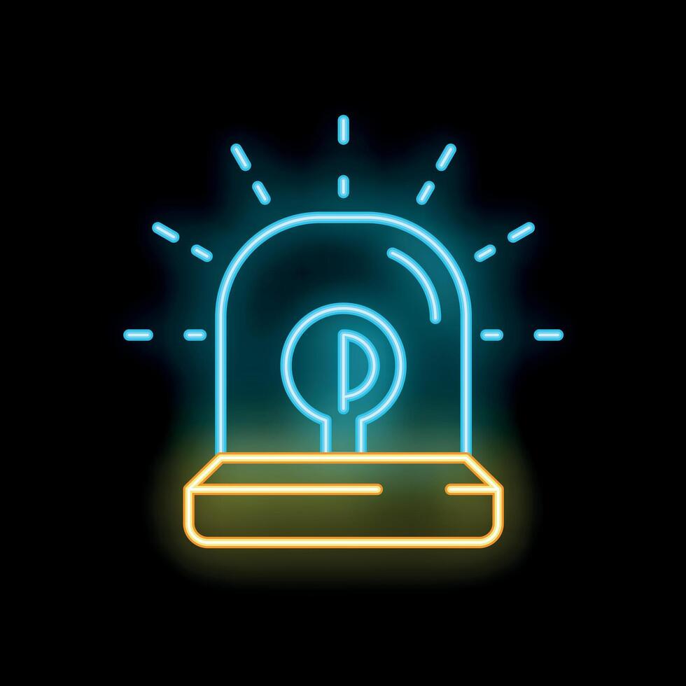 Neon style icon of parking sensor for smart car functionality Pro Vector