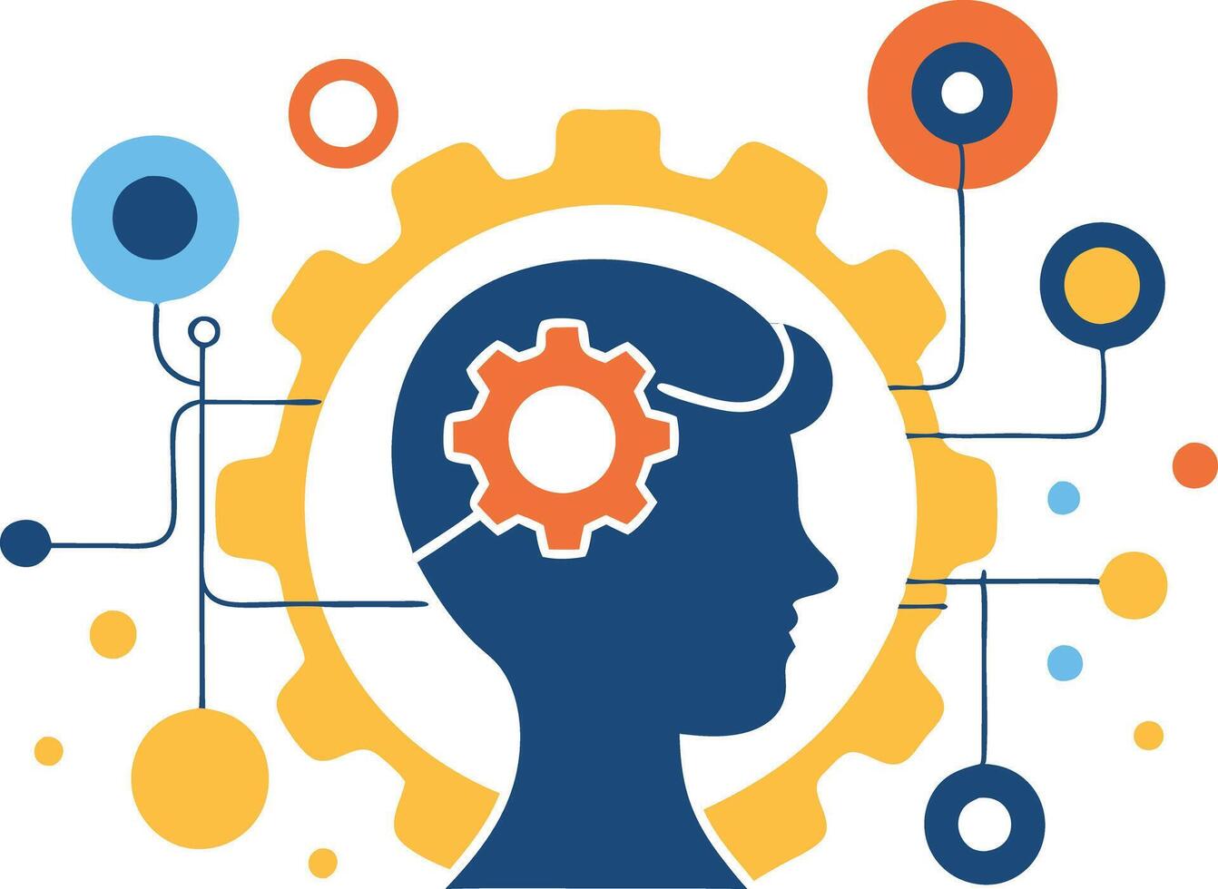 Human head with gears and lines, representing technological innovation, ideas, and brain processing concepts Pro Vector