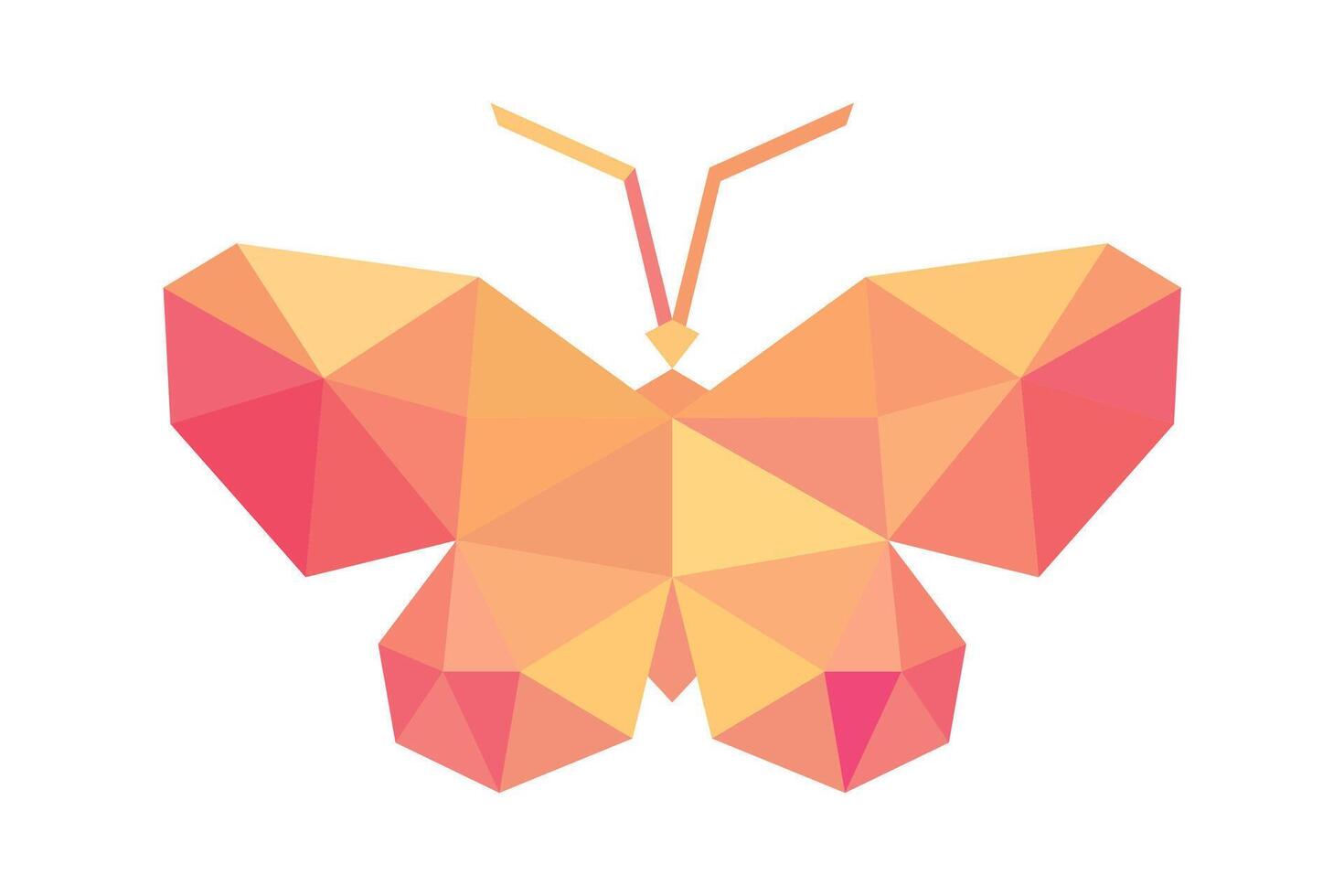 Mosaic triangle design of red butterfly. 3D style on butterfly for emblem, broach, and design element. Pro Vector