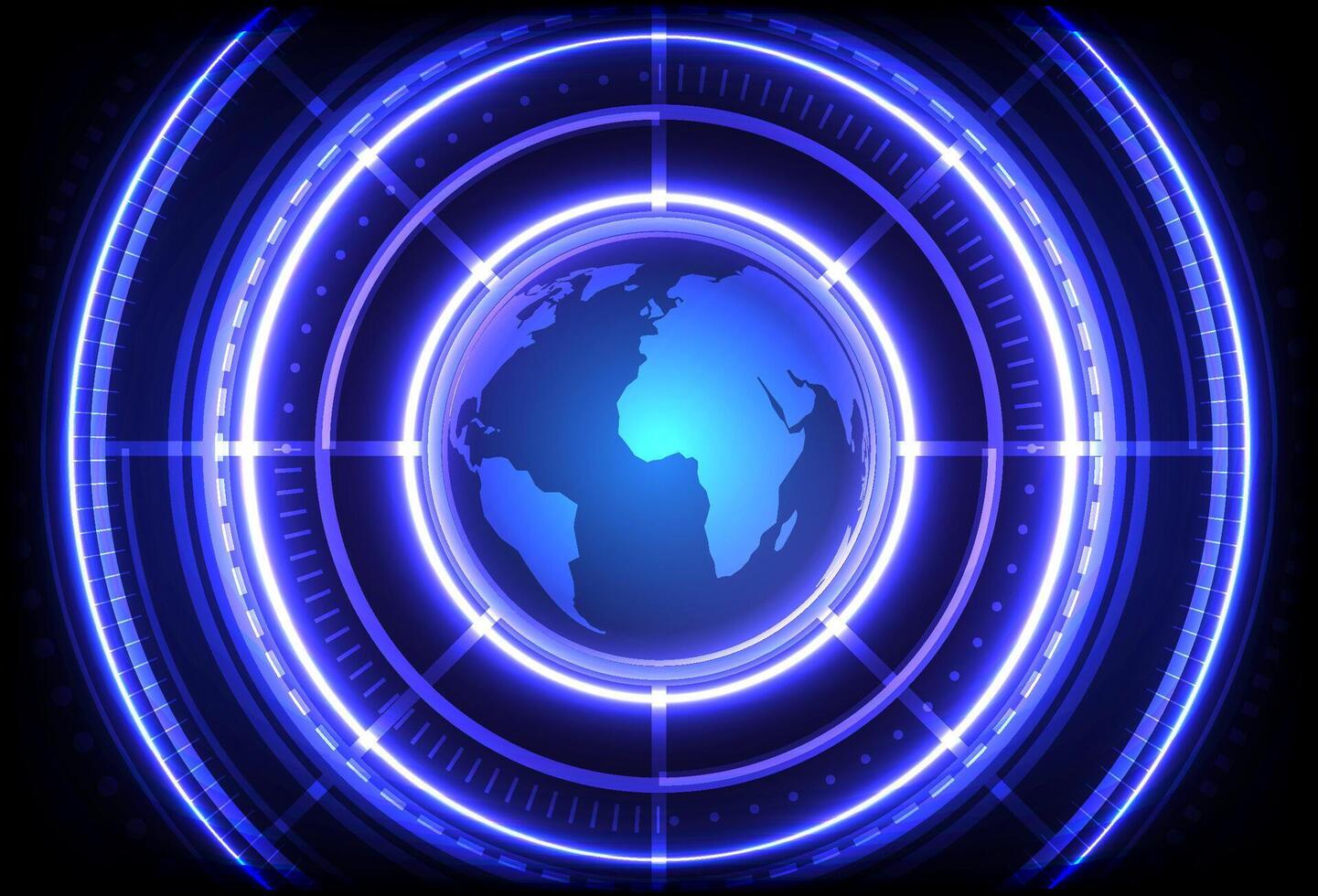 Digita background abstract global hologram technology. Design for ring, sphere, circle, , technology digital, machine. Pro Vector