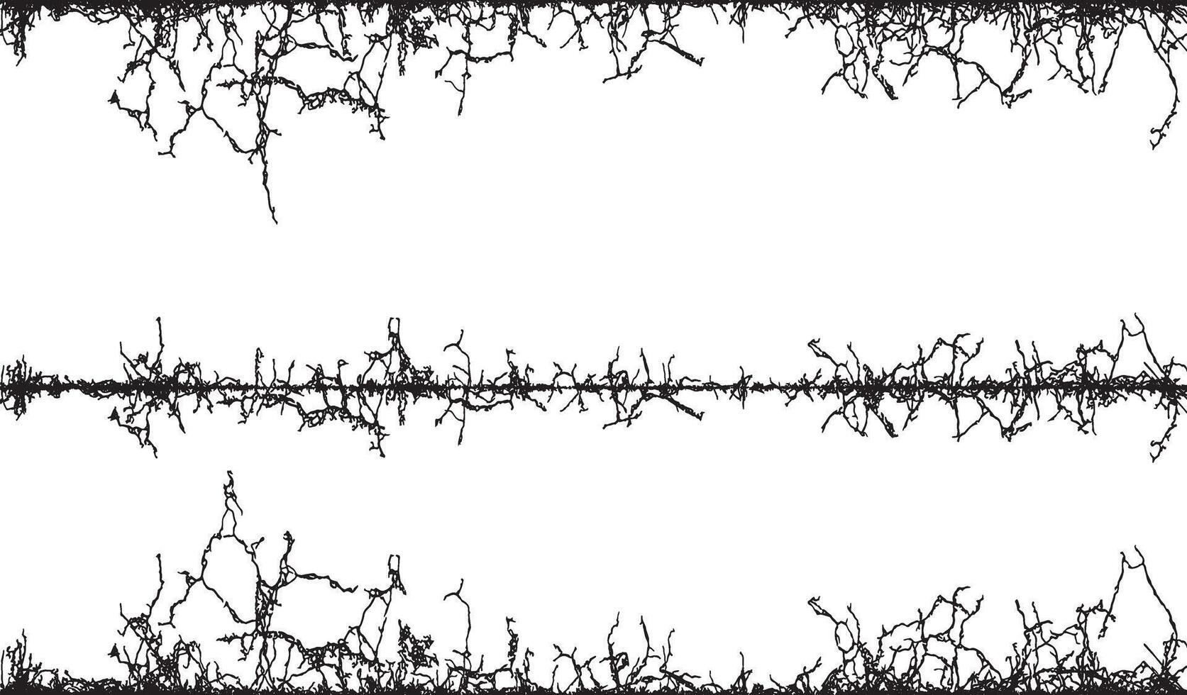 a black and white image of a tree with branches, A set of black and white fence lines with different shapes, a border wire with barbed wire, barbed with a line Pro Vector