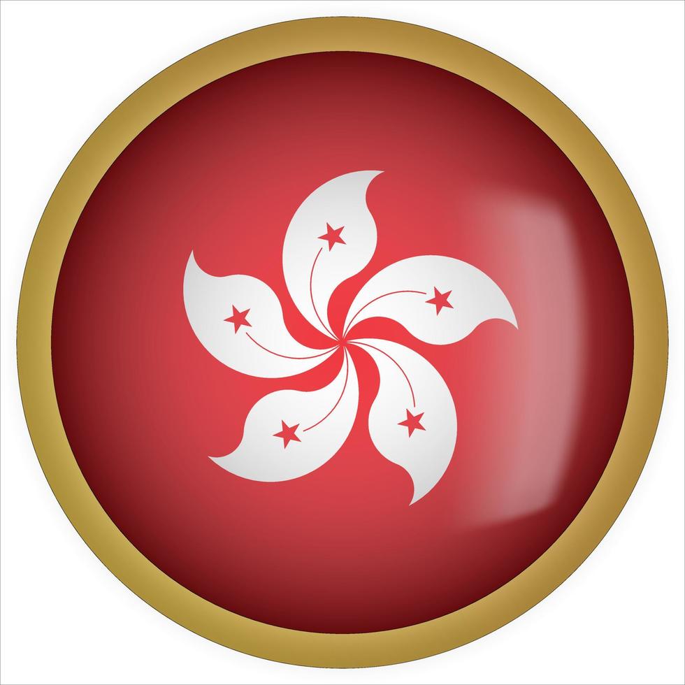 Hong Kong 3D rounded Flag Button Icon with Gold Frame Free Vector