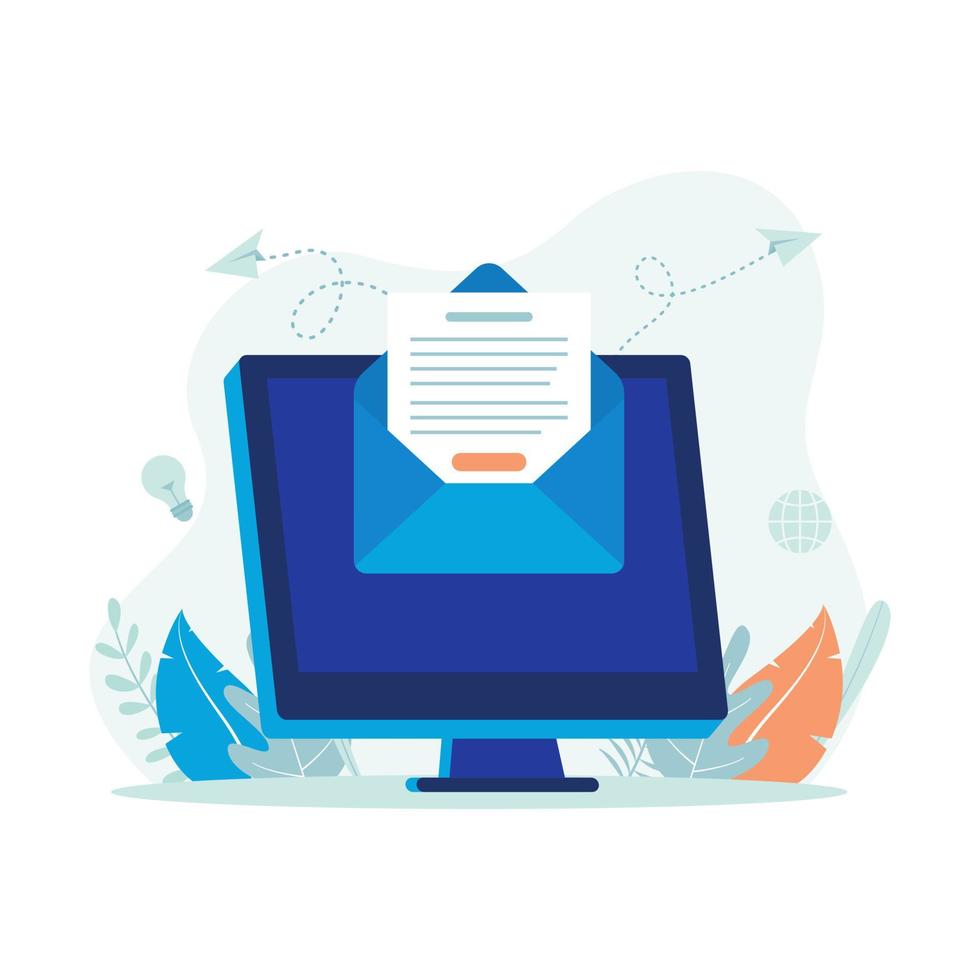 Email newsletter illustration. Computer with envelope icon. Flat vector suitable for many purposes. Pro Vector and Pro SVG