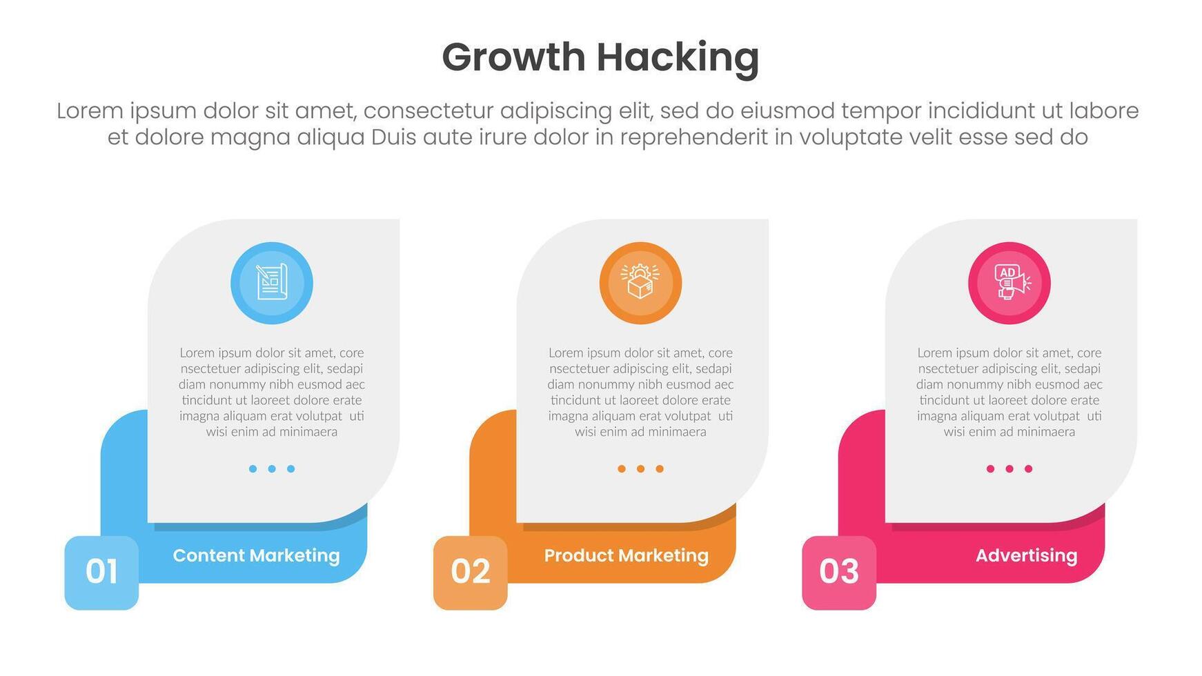 growth hacking infographic 3 point with creative box container for slide presentation Pro Vector
