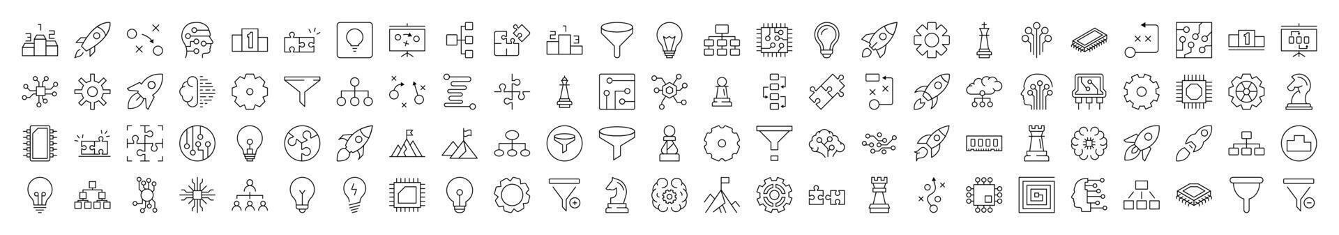 Data and Analytics Icon Pack. Contains Icons of Puzzle, Funnel, Gear, Cogwheel, Spaceship that Can Be Used for Design of Cards, Posts, Apps, Web Sites Pro Vector