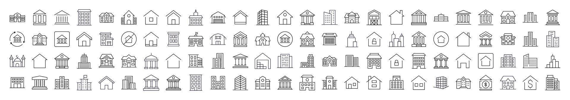 Different Constructions Outline Web Line Icons Collection. Editable Stroke. Minimalistic Linear Pictogram for Design of Cards, Apps, Banners, Posts Pro Vector