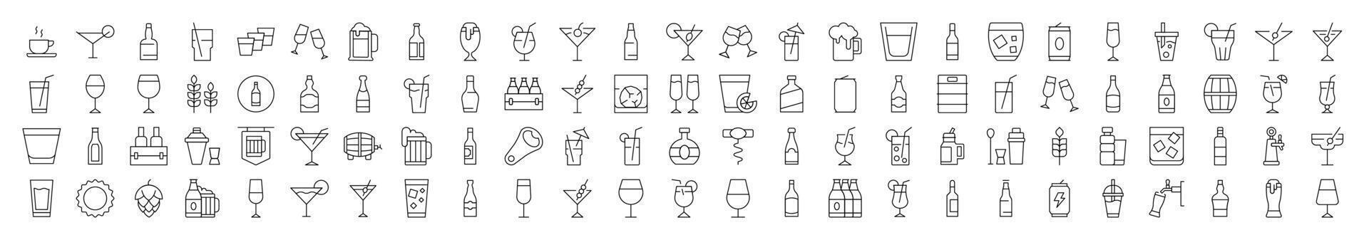 Minimalistic Linear Illustrations of Soft Drinks and Alcohol. Contains Icons of Beer, Cocktail, Bottle that Can Be Used for Design of Cards, Posts, Apps, Web Sites Pro Vector