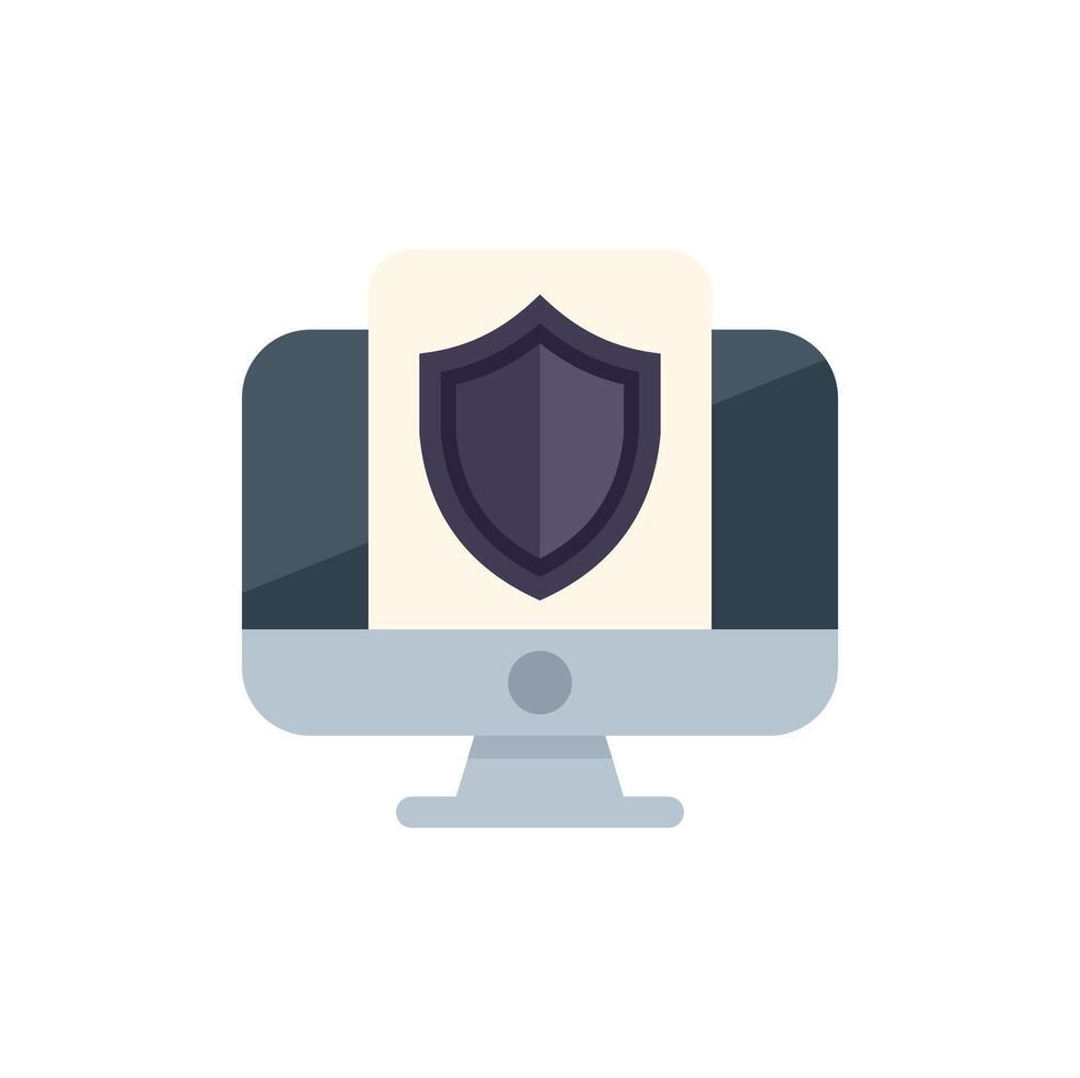Desktop computer displaying security shield icon for data protection Pro Vector