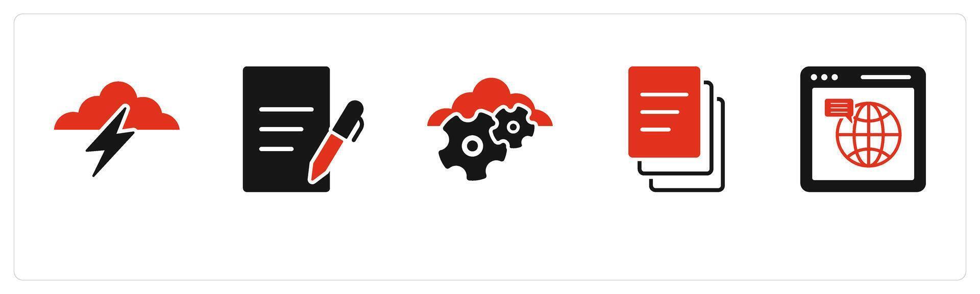 A set of 5 Business icons as cloud lightning, writing, cloud settings, duplicate copy Pro Vector