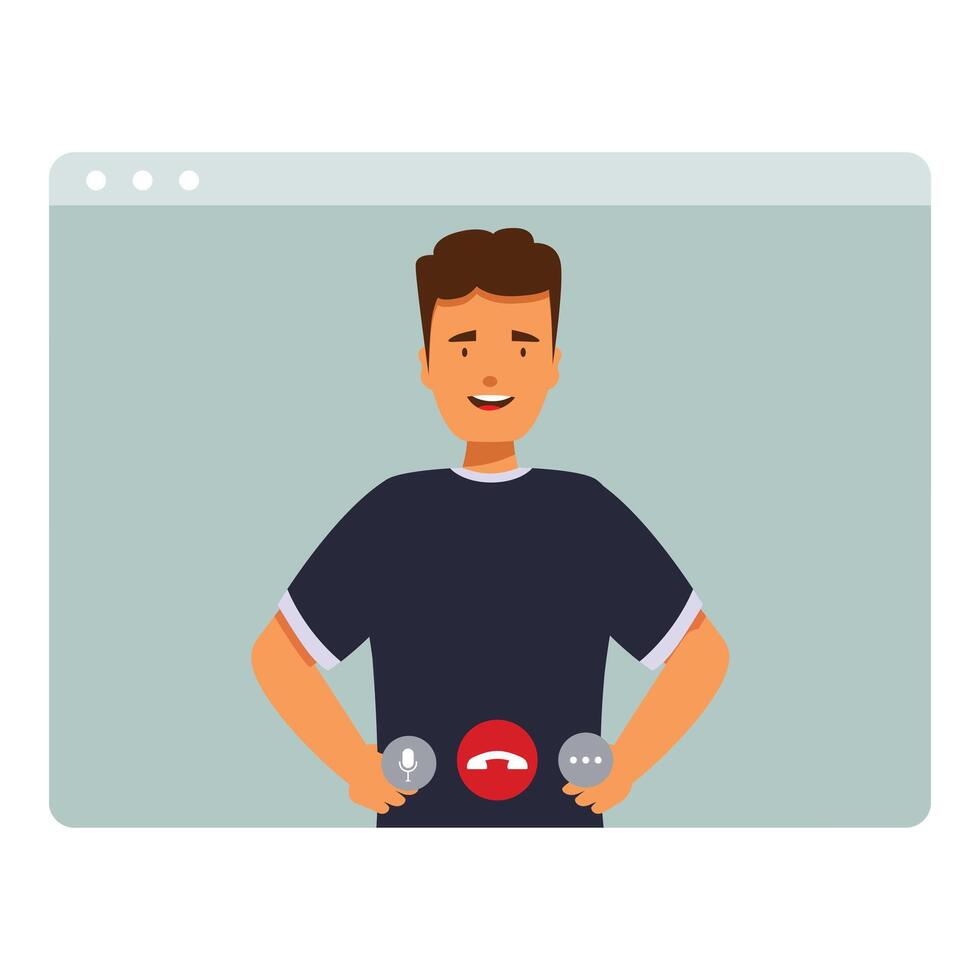 Young man is rejecting an incoming video call on a computer Pro Vector