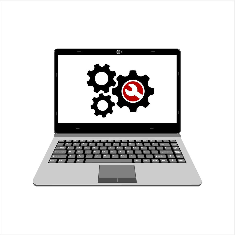 realistic laptop vector illustration display setting and installing process Pro Vector