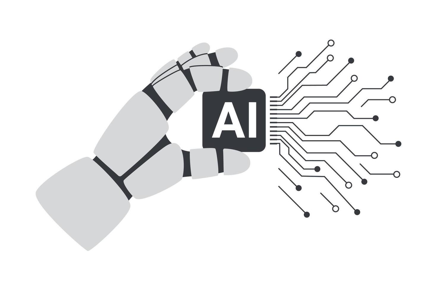 Artificial intelligence chip processor. Robots hand holding chip processor isolated on white. AI concept. Pro Vector