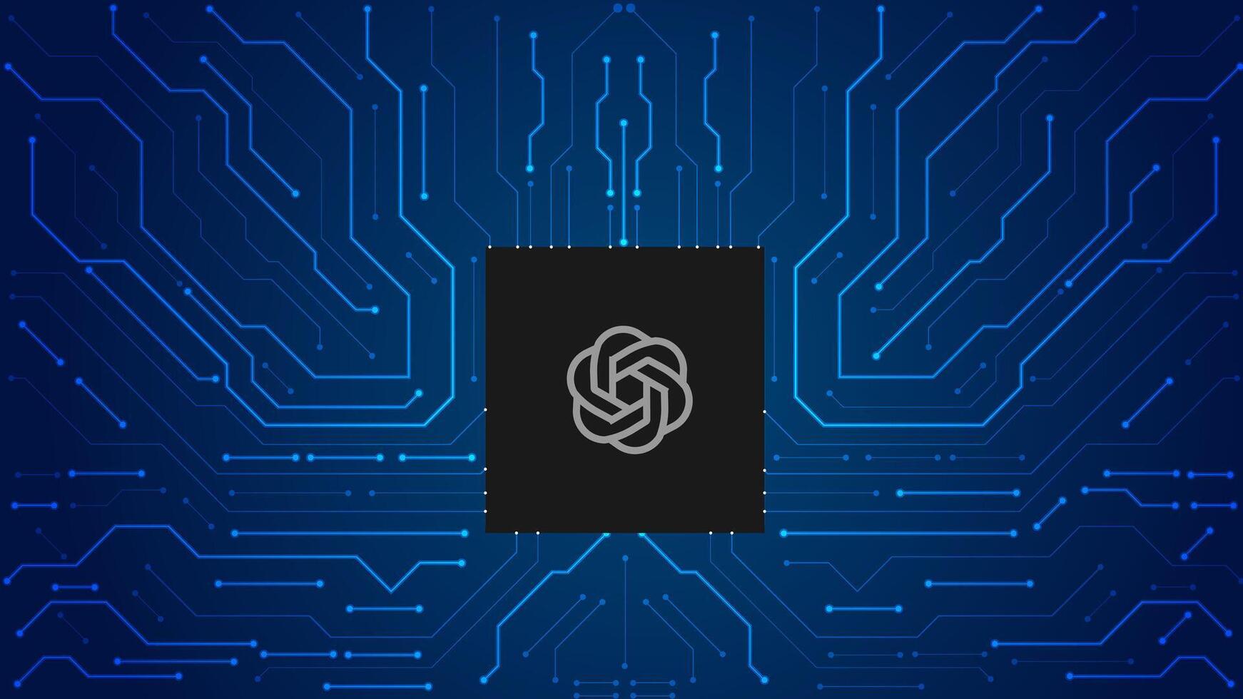 Chat gpt or open ai. Microchip transferring data using circuit board artificial intelligence background blue editable Pro Vector