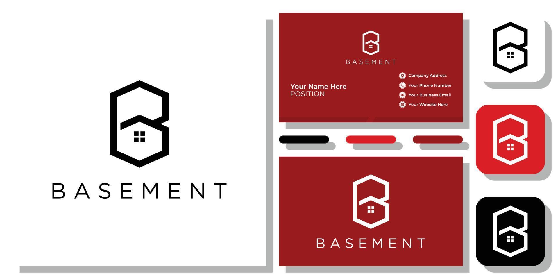 basement symbol abstract buildings landmark hexagon shape with business card template Pro Vector
