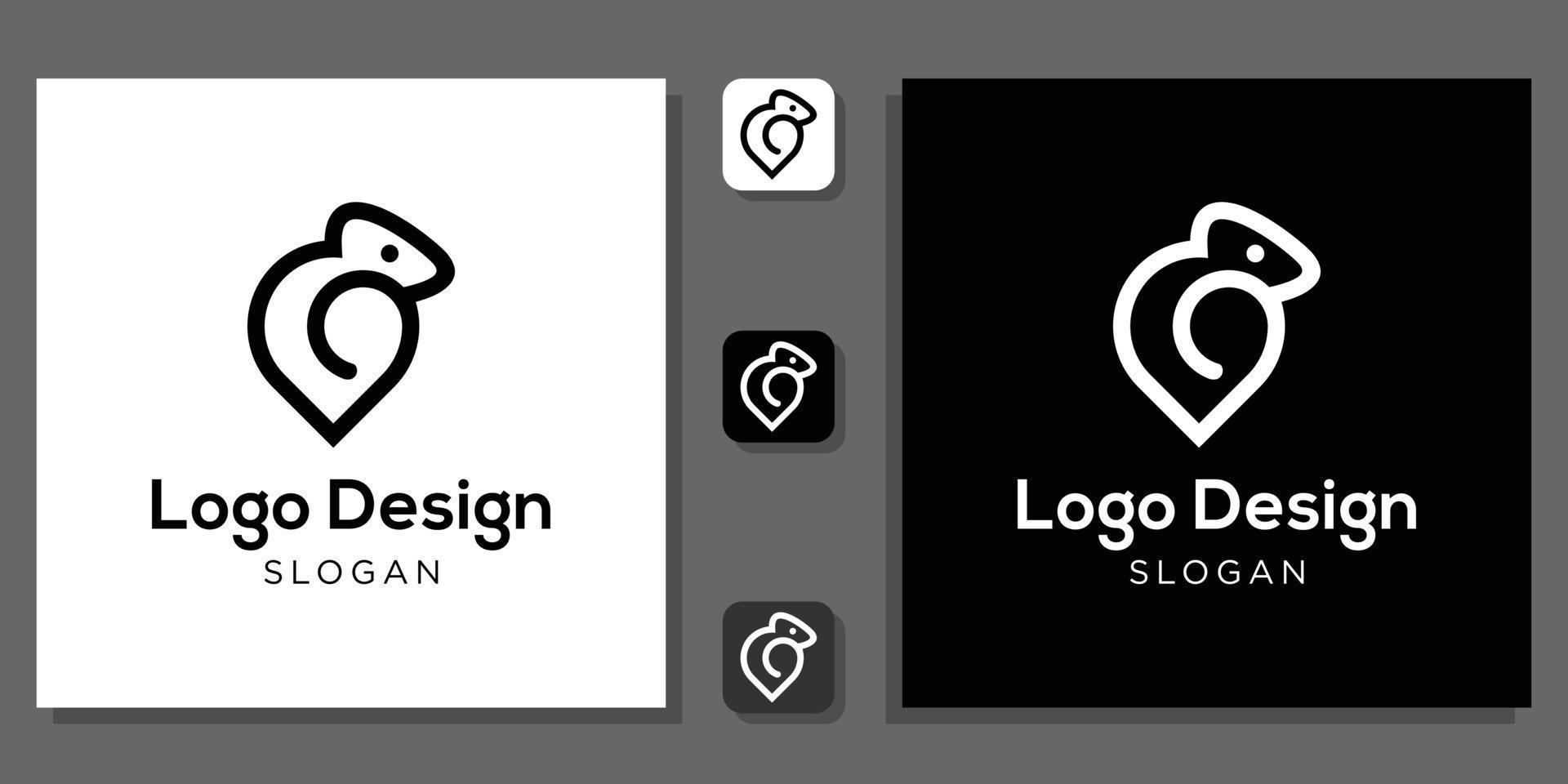 logo design symbol combination chameleon location shape with app template Pro Vector