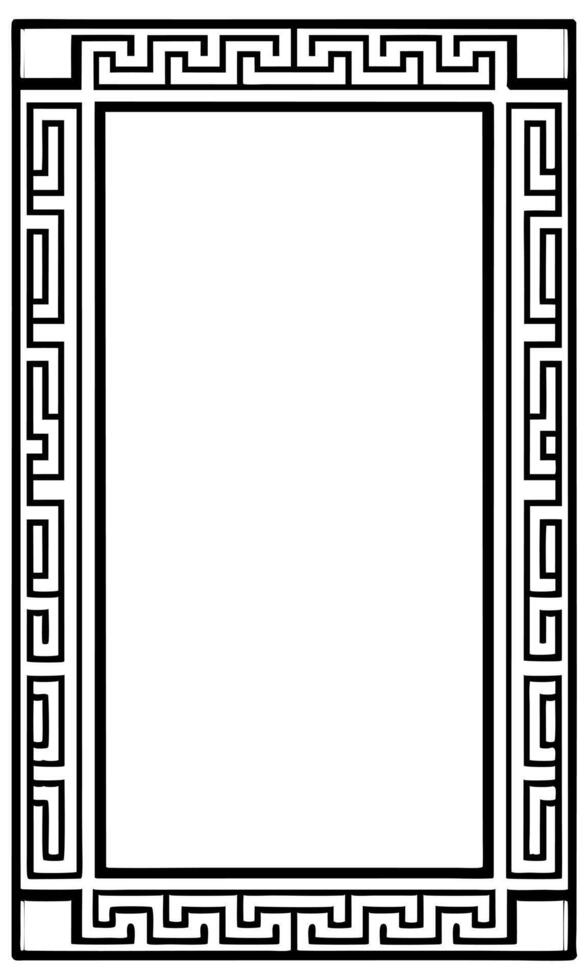 rectangular empty frame with greek key border, illustration line art Pro Vector