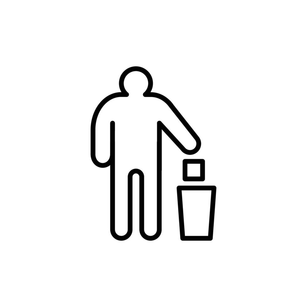 man trowing garbage in trash can thin outline icon design good for web or mobile app Pro Vector