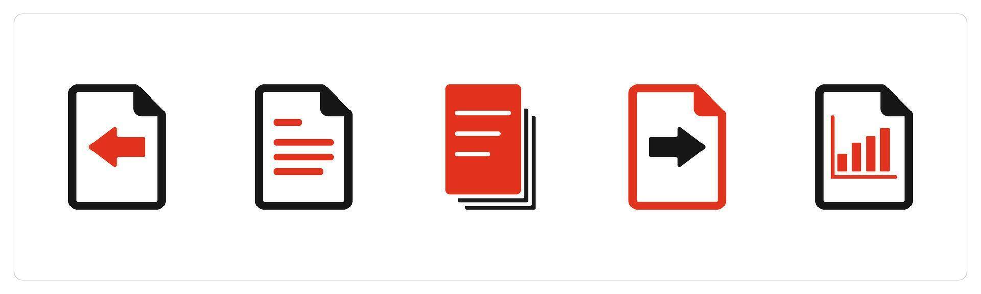 A set of 5 Document icons as receive file, document, duplicate copy Pro Vector