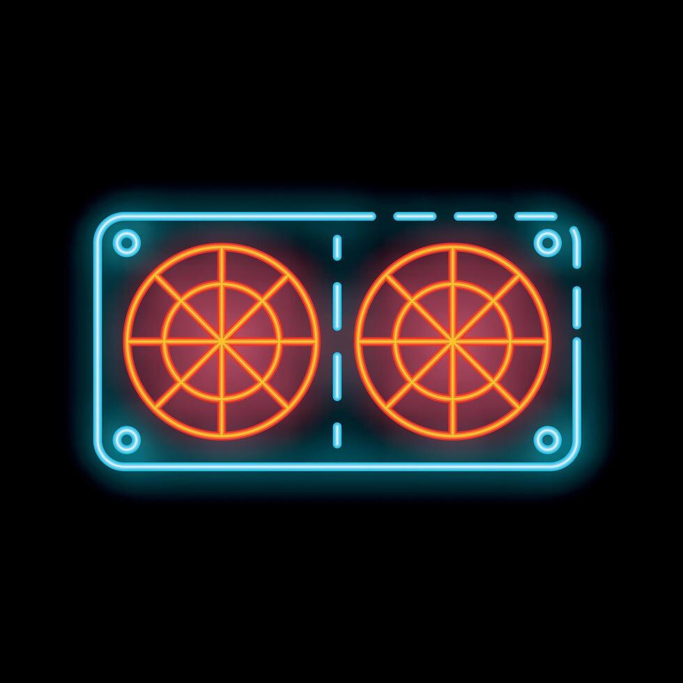 Neon icon of computer fans cooling system showing overheating issue Pro Vector