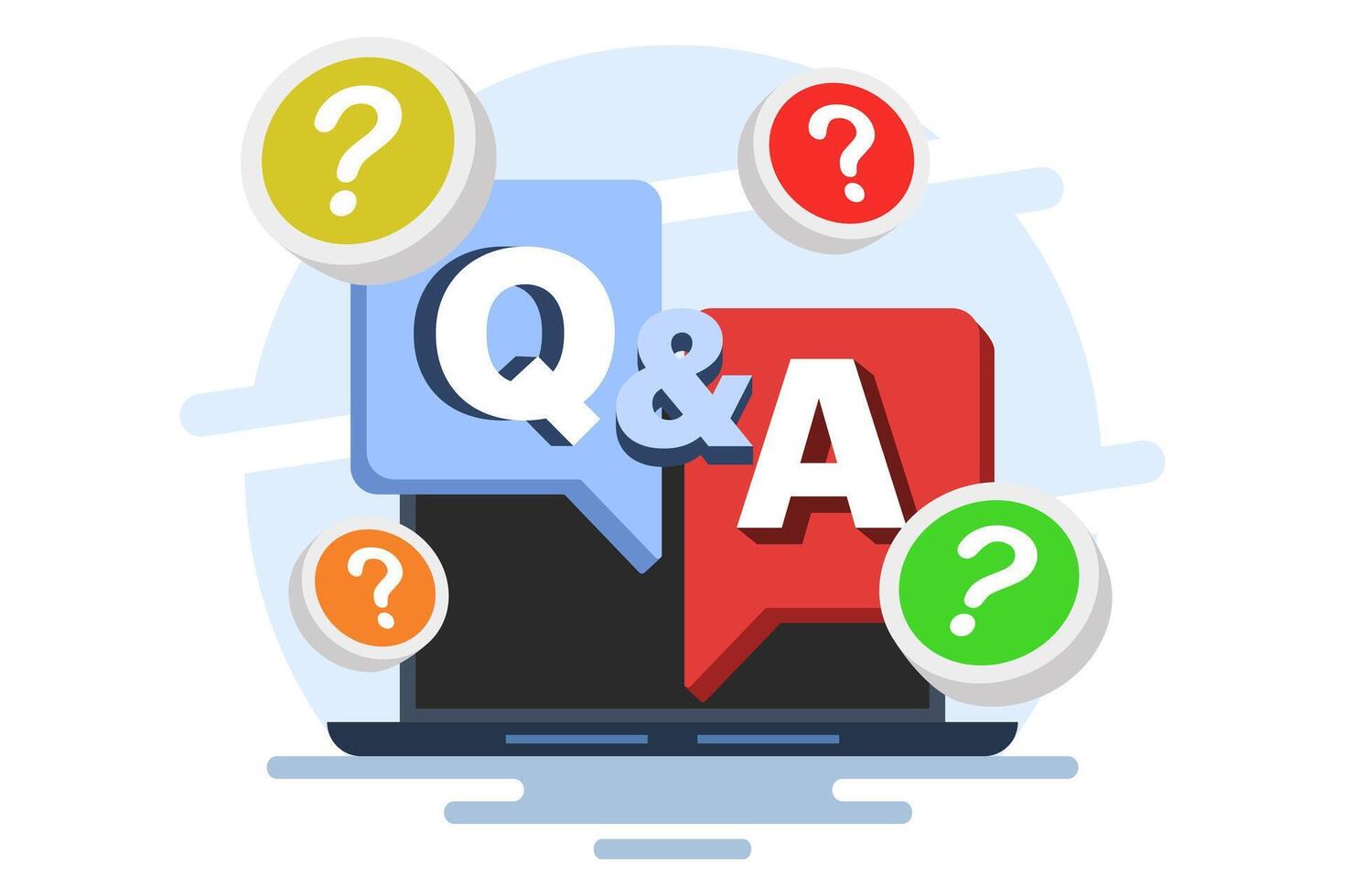 Question and Answer concept, FAQ. explanation of customer feedback and information. Question and Answer as a request for advice and support. questions and answers, flat illustration in the background. Pro Vector