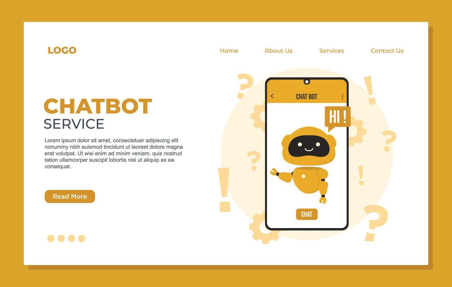 Chatbot landing page template website landing page design template with flat cartoon character and robot Pro Vector