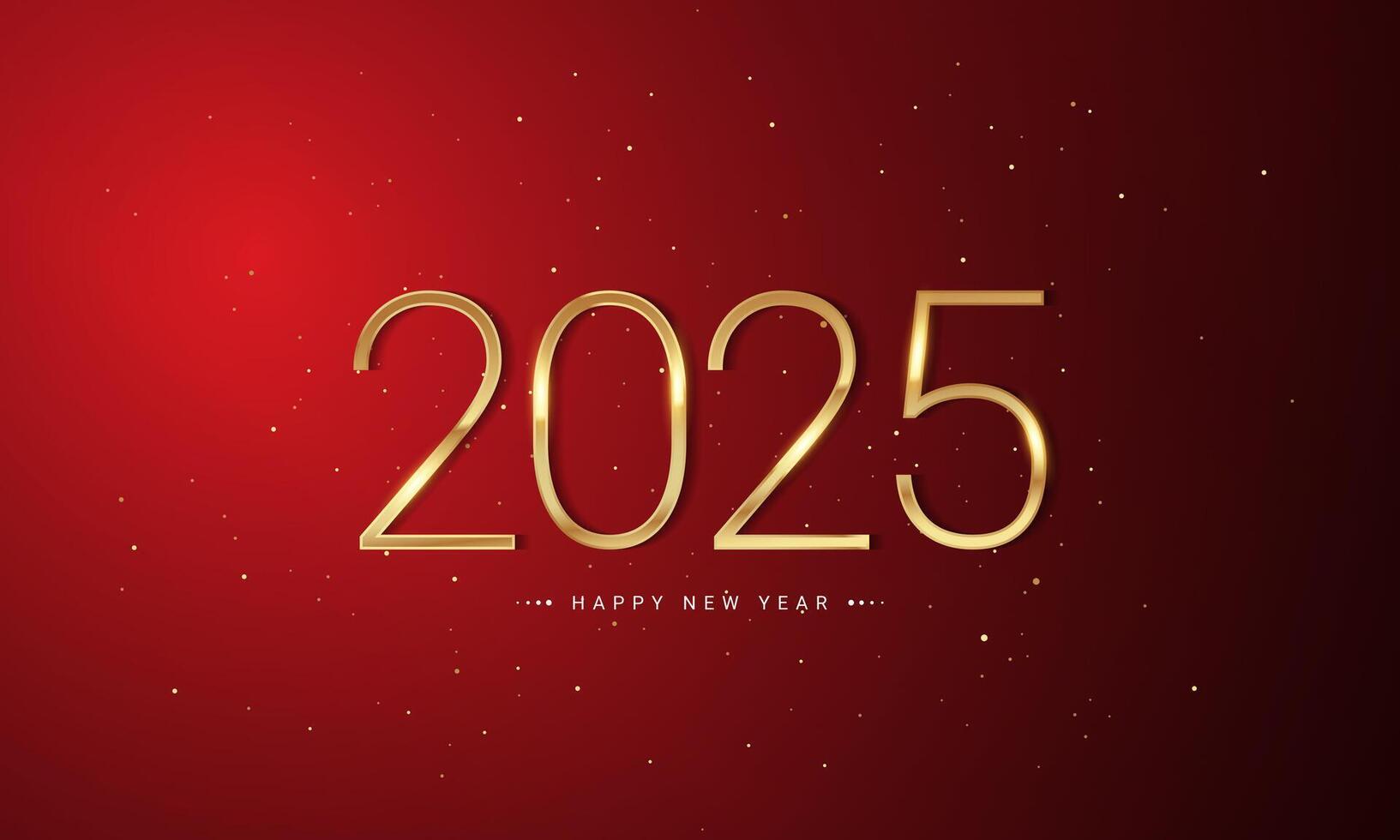 2025 Happy New Year Background Design with golden number on red background. Pro Vector