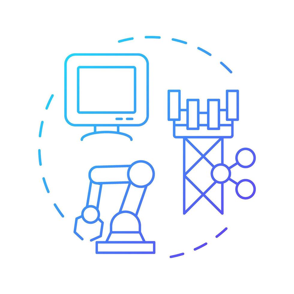 Industry 3.0 blue gradient concept icon. Third industrial revolution. Digital transformation. Computers. Round shape line illustration. Abstract idea. Graphic design. Easy to use in article Pro Vector