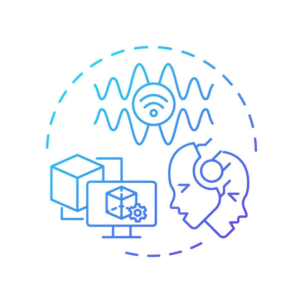 Digital twins blue gradient concept icon. Virtual simulation. Industry 5.0 technology. Predictive maintenance. Round shape line illustration. Abstract idea. Graphic design. Easy to use Pro Vector