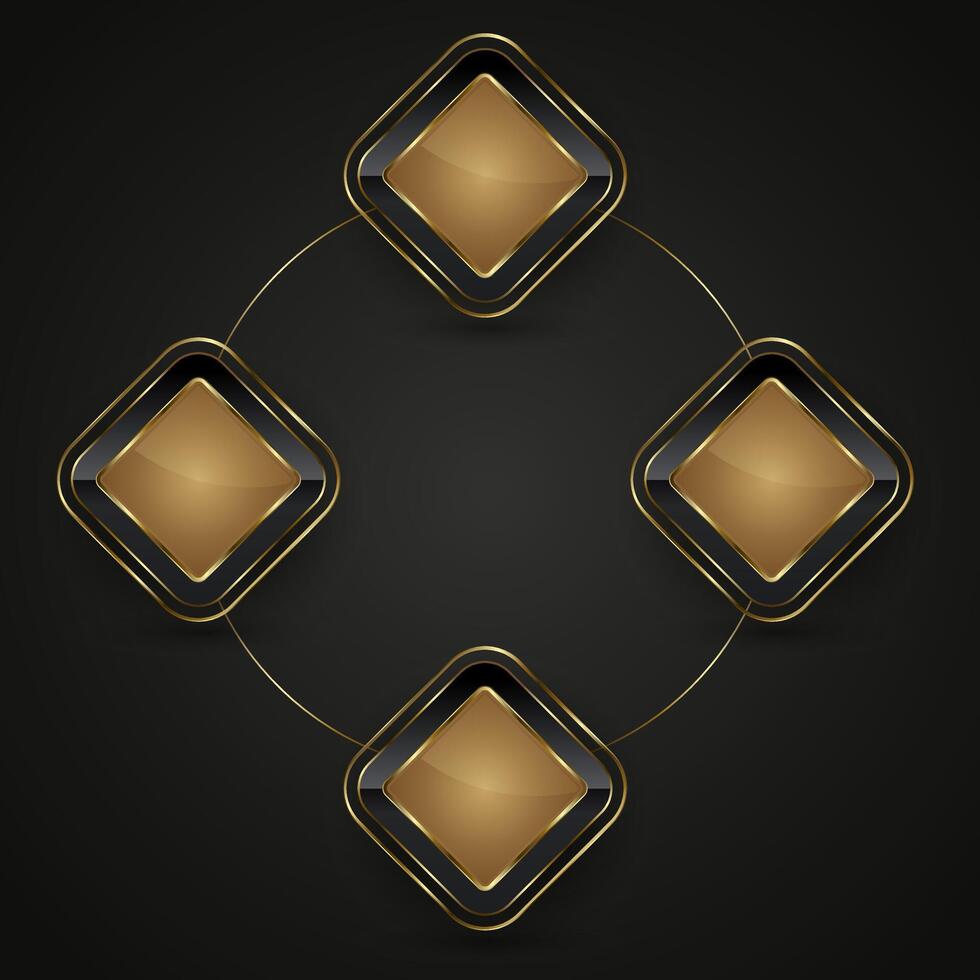 Set of circle Luxury rectangle Black and gold button with frame illustration. and circle 3d glossy elegant design for empty label, emblem, medal vector