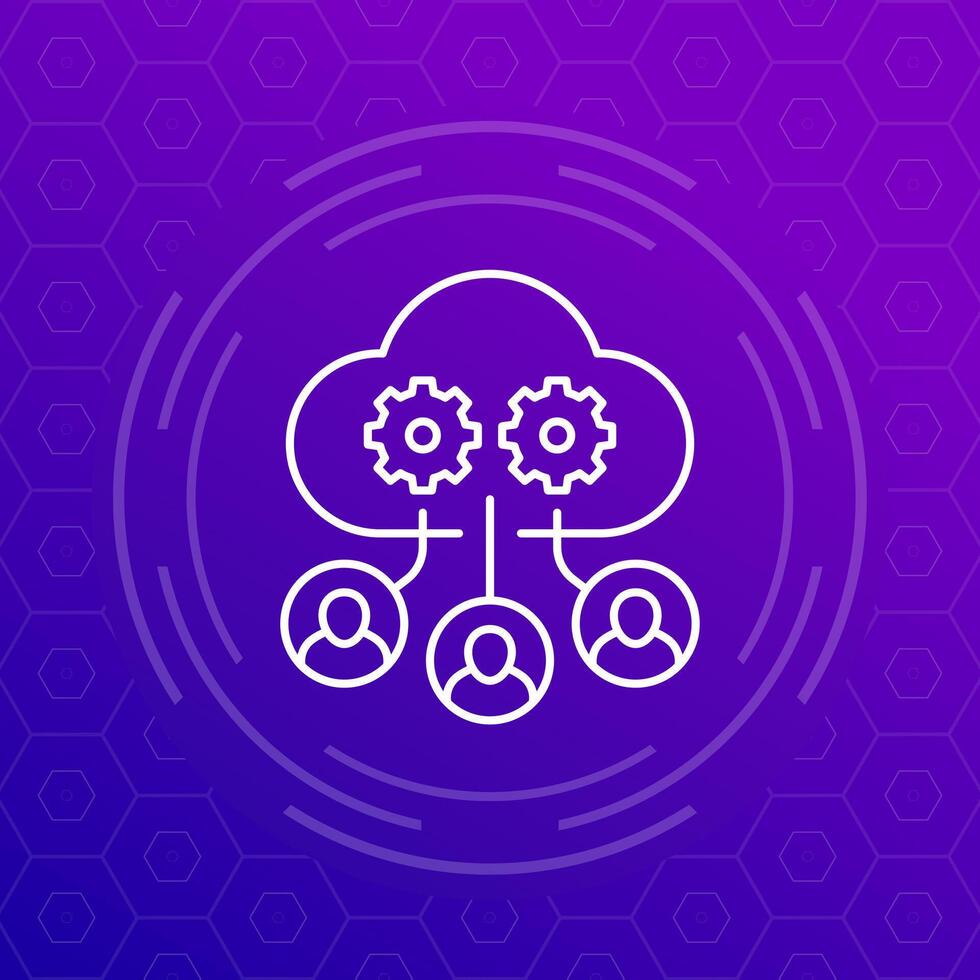 process user data in cloud icon in line design Pro Vector