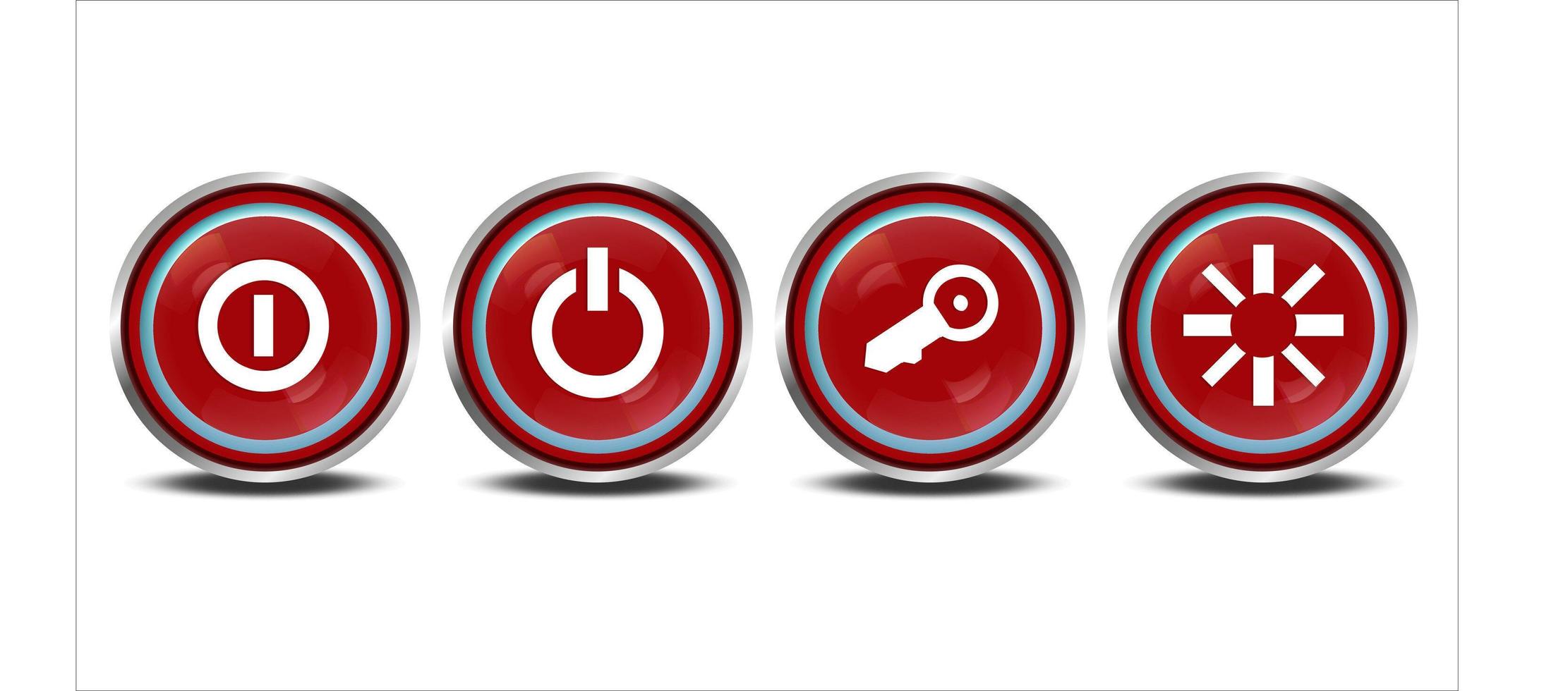 Red power push-button with shadow. Round shutdown illustration. On off icon interface. Pro Vector