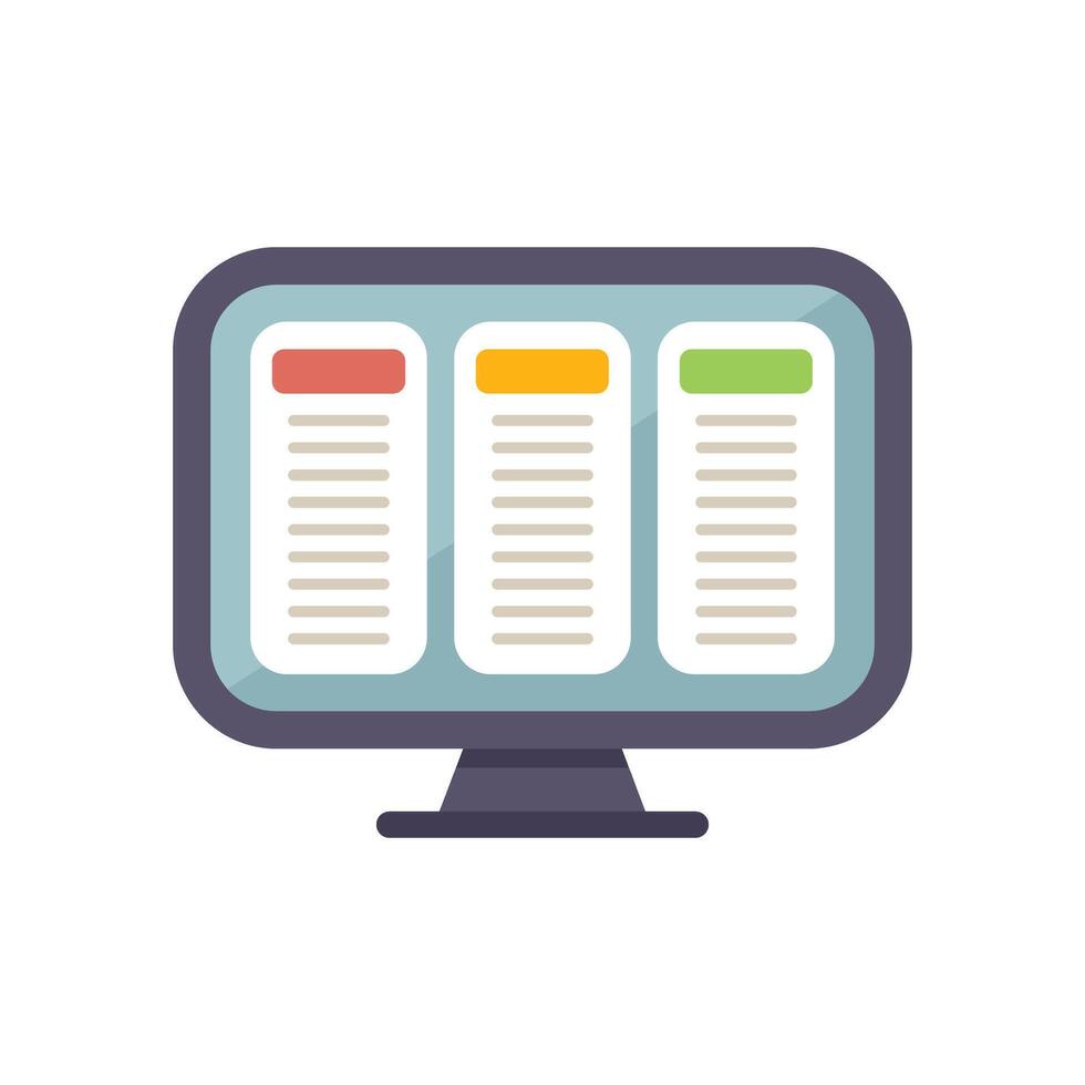 Computer showing kanban board with tasks for agile project management methodology Pro Vector