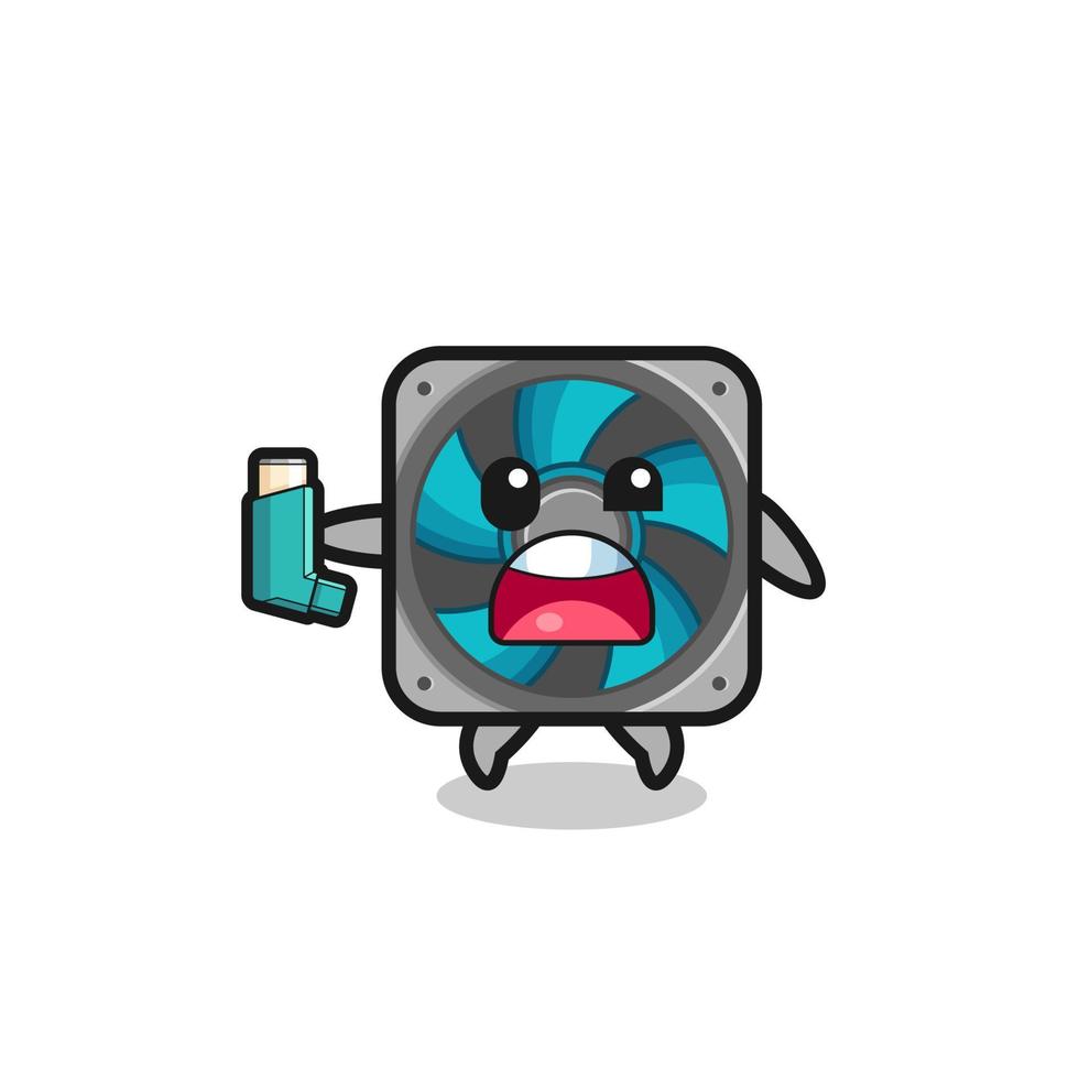 computer fan mascot having asthma while holding the inhaler Pro Vector and Pro SVG