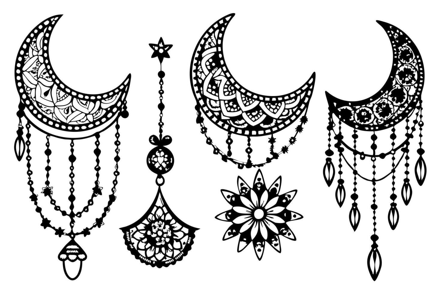 a collection of 50 crescent moon vectors, each uniquely adorned with intricate patterns at the Pro Vector