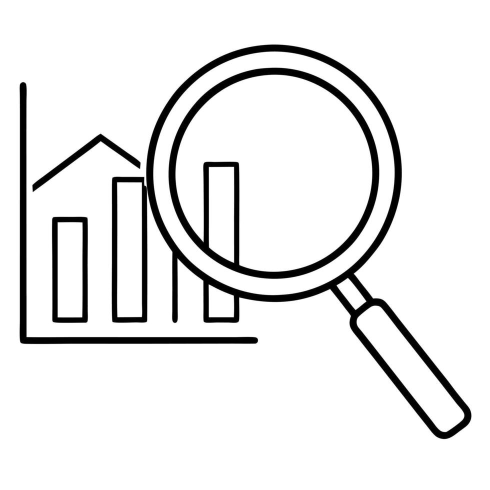 a magnifying glass over a graph or a bar chart, indicating analysis and monitoring, Pro Vector