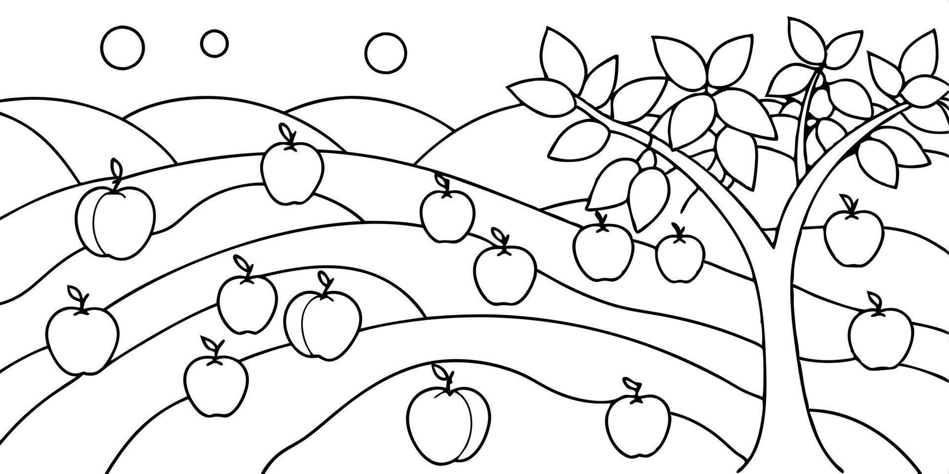 design a minimalistic, line-art illustration of a peach orchard the scene should feature simple, Pro Vector