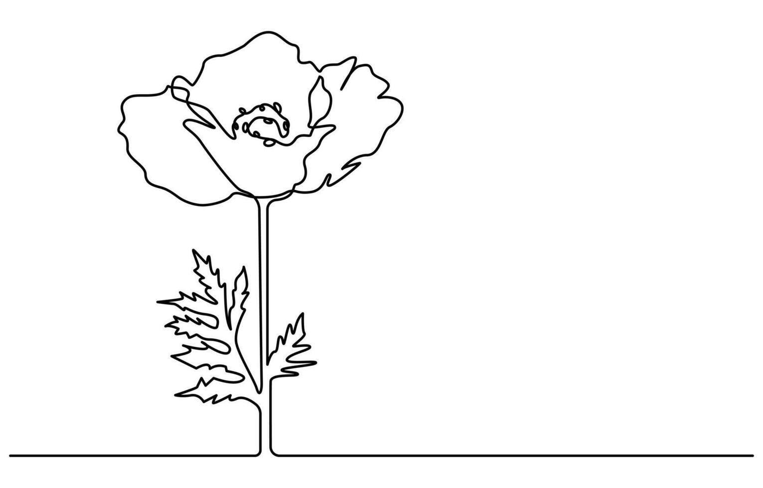 Abstract one line continuous poppy flower drawing with circle on striped background in minimal style Pro Vector