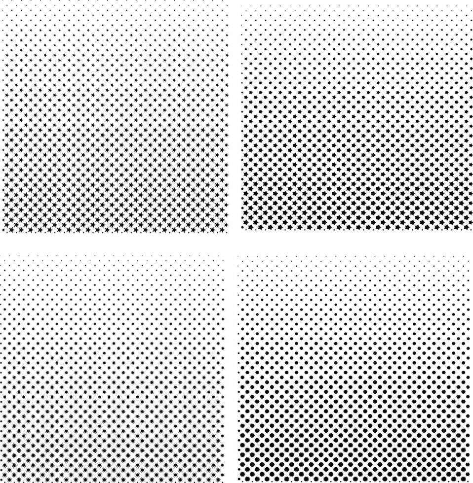 Set of halftone patterns with star and circular gradient shape Free Vector