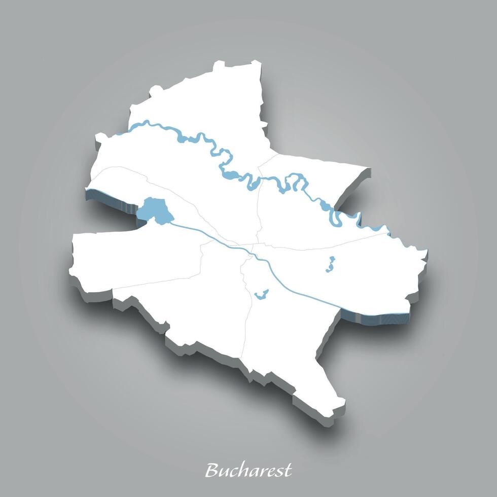 3D Map of Bucharest with Waterways Highlighted Pro Vector