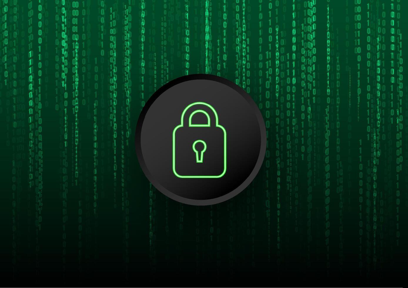 Cyber security concept. Locks on technology and the binary number dark green background. Hacker protection and viruses on the Internet. Pro Vector