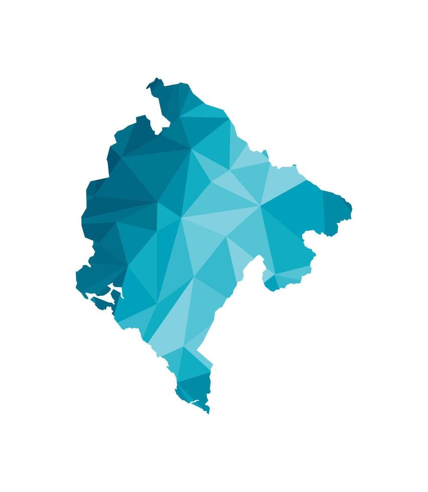 isolated illustration icon with simplified blue silhouette of Montenegro map. Polygonal geometric style, triangular shapes. White background. Pro Vector