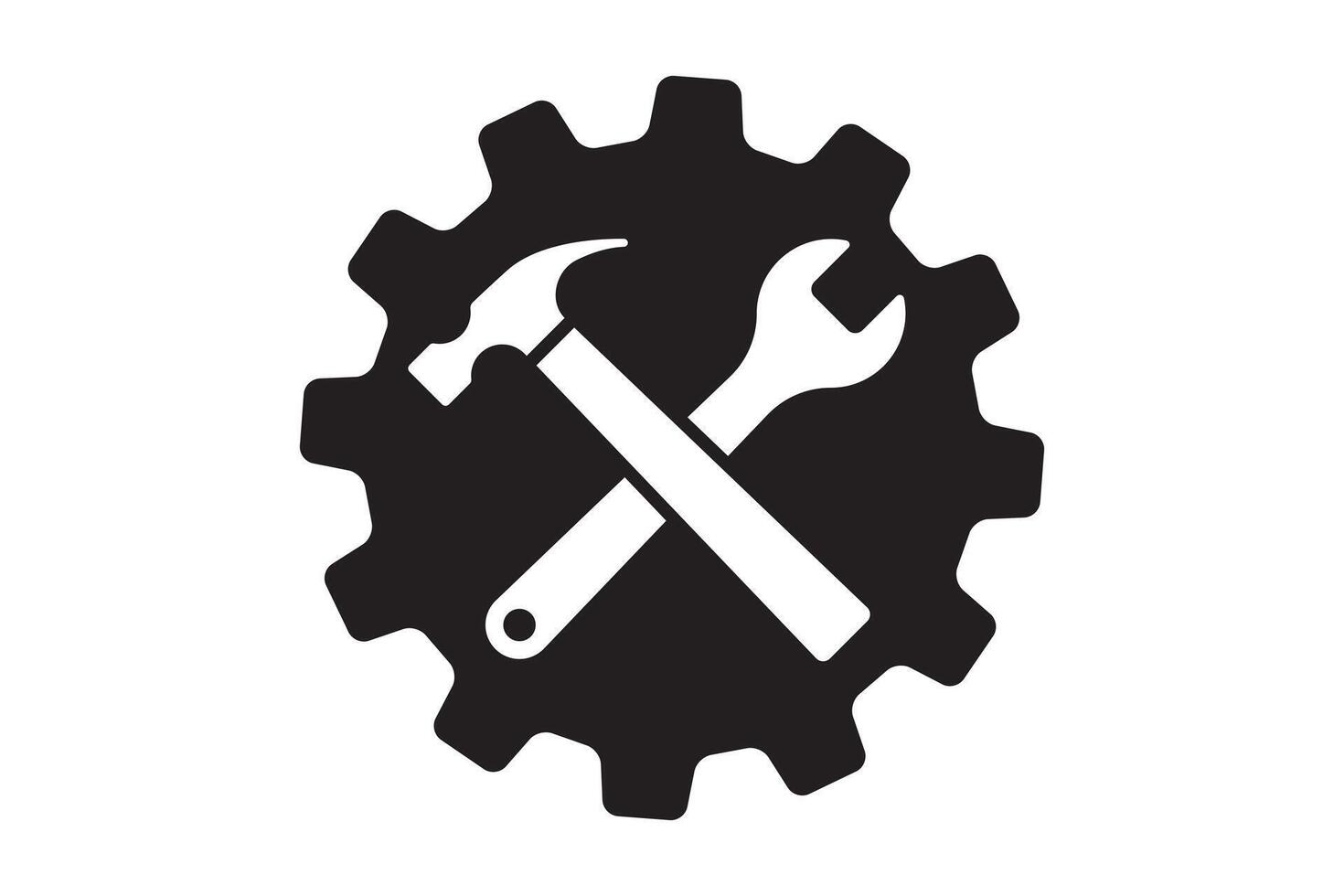 Setting icon with work cog gear element. Cogweel mechanism symbol. Pro Vector