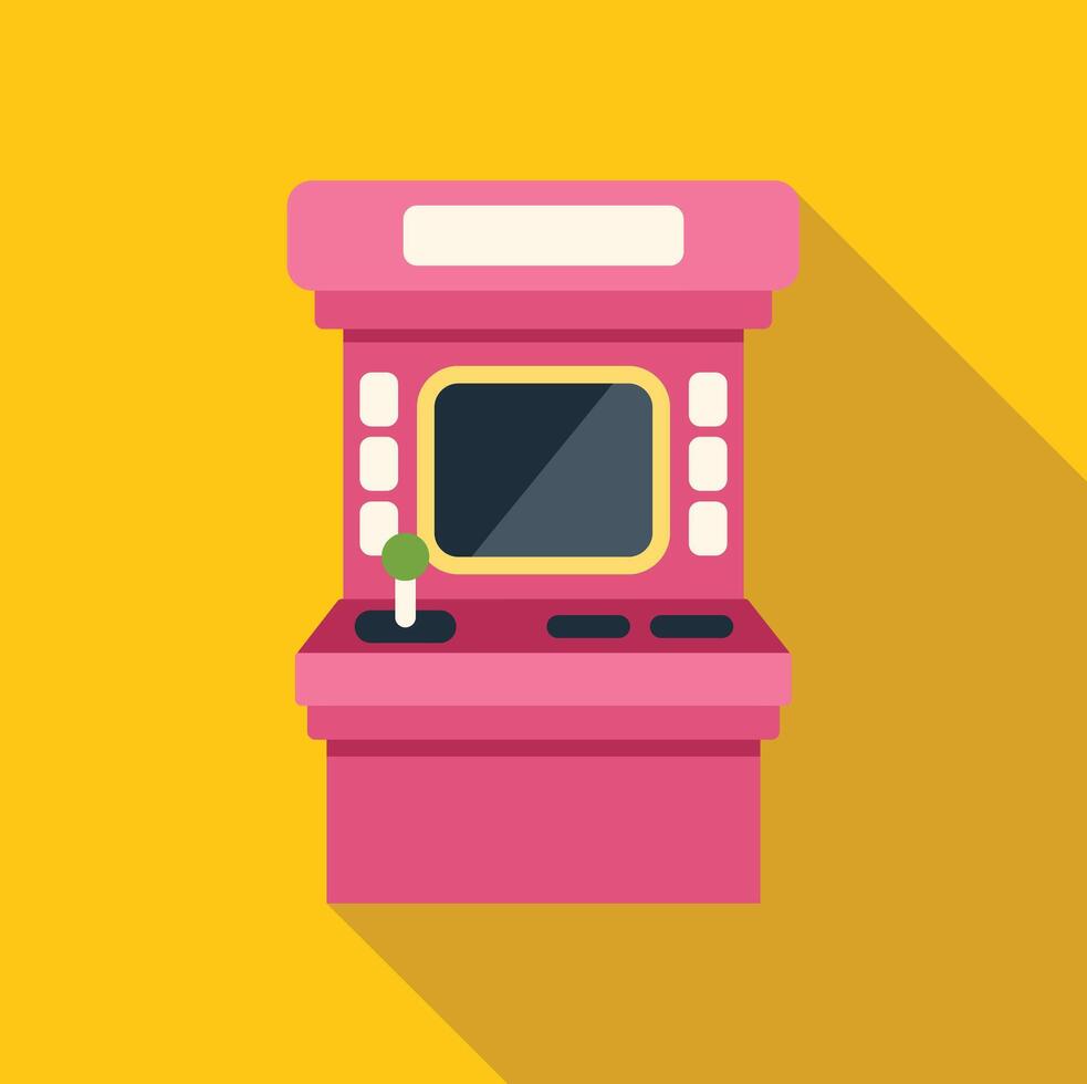Pink arcade game machine casting long shadow on yellow background Pro Vector