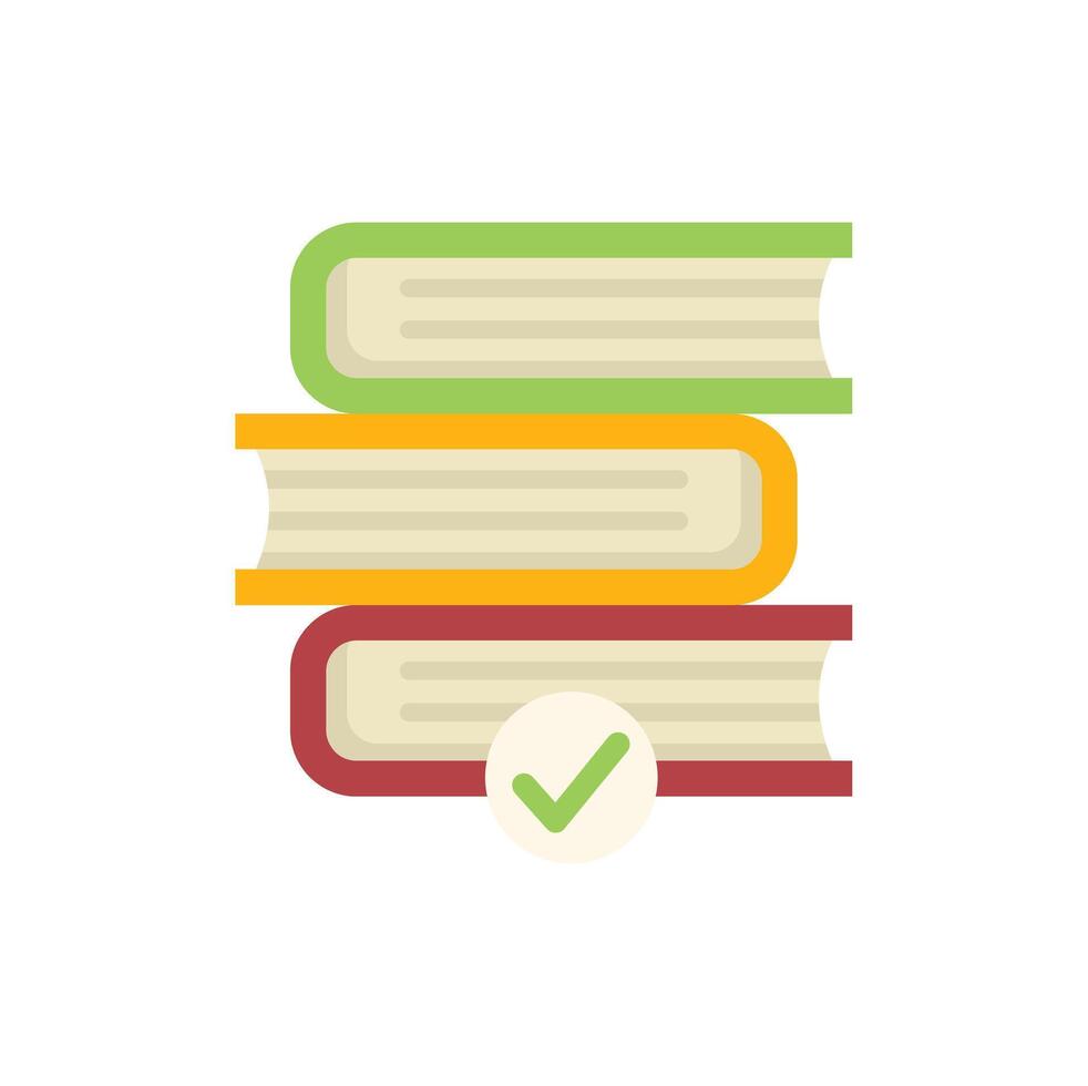 Stack of books with check mark symbol for successful learning Pro Vector