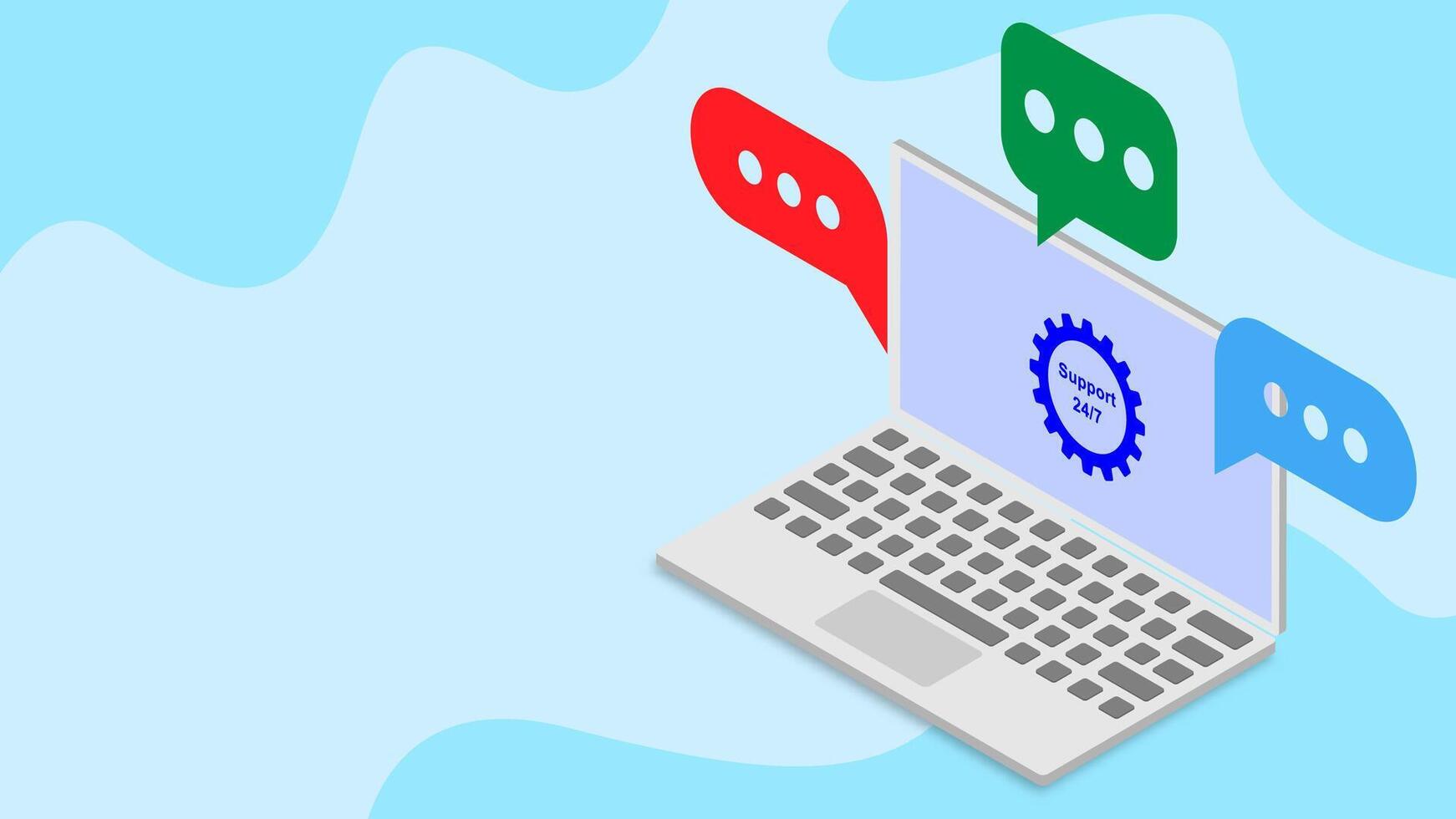Technical support and customer support service concept with laptop and chat bubbles isometric Pro Vector