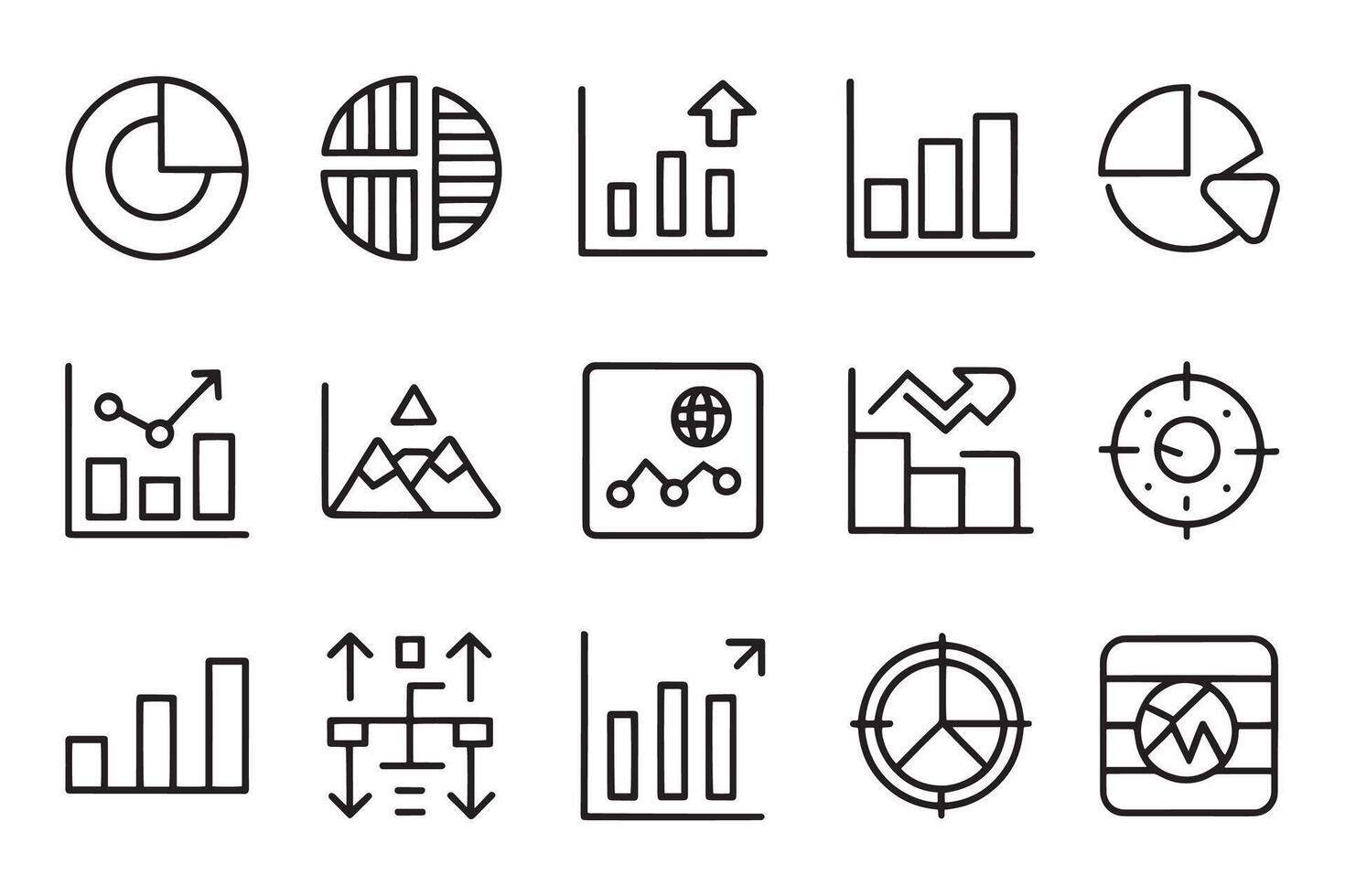 Data elements, bar and pie, diagrams for business infographics related editable icon set isolated flat illustration white background. vector