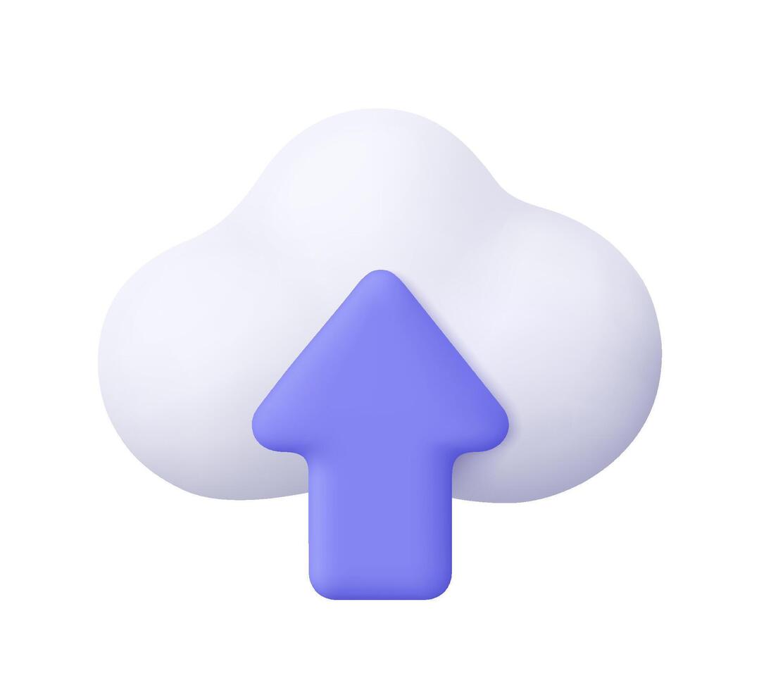 Cloud with upload and download arrow. Media loading, data transfer, cloud storage and cloud computing. 3d icon. Cartoon minimal style. Pro Vector