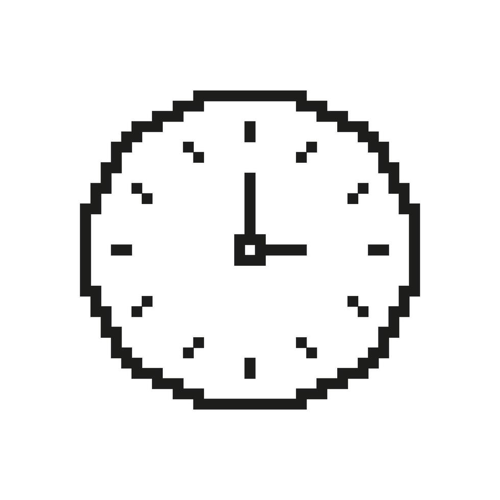 Clock Pixelated Icon. Pixel Art Symbol of Time and Timekeeping. Time Measurement and Management. Isolated Illustration Pro Vector